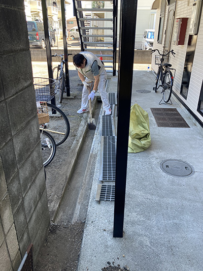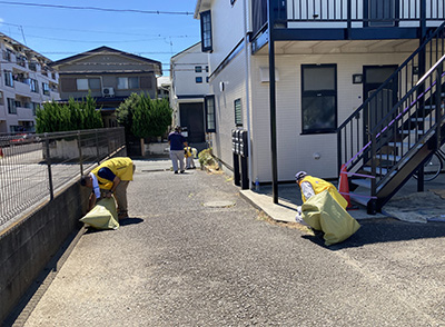 工事周辺の近隣清掃を行わせていただきました。まだまだ夏の日差しの暑い中ではじめは大変だなと思いながらでしたが、雑草や泥に挑んで作業を進めていくうちに現場がきれいになり、がんばって良かったという気持ちになりました。近隣の皆様には工事でご迷惑をおかけいたしますが、どうぞよろしくお願い申し上げます。まだ暑い日が続きますが、皆様もお体ご自愛ください。